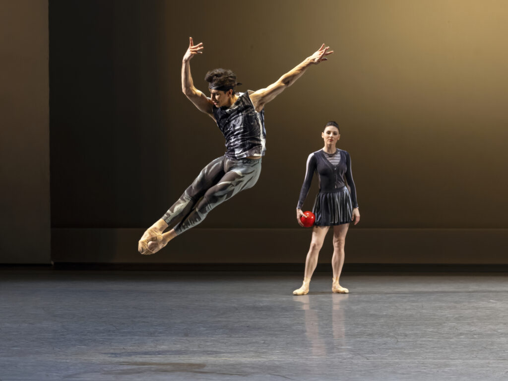 Two ballets by Justin Peck bookended the evening. In Dig the Say, ballet’s reigning It couple, Tiler Peck and Roman Mejia, tossed a red ball back and forth – trading the ball and trading solos packed with jazz-inflected jumps and pirouettes.