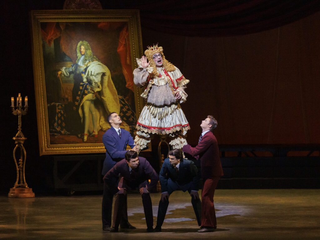 Ratmansky’s comic satire hit like a glitter bomb on Thursday night. He has made some of his most somber and moving work in fierce opposition to the Russian invasion of Ukraine and now adds humor to his creative arsenal. Though a reproduction of Rigaud’s Louis XIV portrait looms over the set, the king remains nameless – there is no shortage of deluded, self-absorbed tyrants, past and present, ripe for skewering. Santo Loquasto’s irreverent costume mashup ricochets from Bourbon splendor to Agnes DeMille’s Rodeo, Gilligan’s Island, Mötley Crüe and Halston, identifying no one in particular.